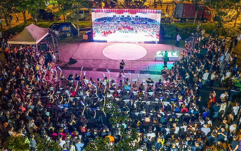 当晚,在蛇山公园,赛事直播与篮球嘉年华交融。观赛屏幕前人头攒动,市民在美食、文艺表演中共享夏夜的热烈氛围。“浙BA”的热血碰撞夜市的热闹,搭配上蛇山公园的夜景,成为球迷聚会的热门场所。